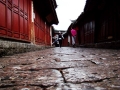 在无数小巷弯弯曲曲,纵横交错。古城中店铺林立,各式商品琳琅满目。在幽静的深巷里,不时会看到身着遥远年代的靛蓝色衣服,头戴红军时期的八角帽,或是“披星戴月”的纳西老人哼着纳西净地的歌曲悠闲地漫步,或三五成群玩着一种古老的纸牌游戏,或独坐在屋檐下,若有所思。在敞开的院门中,可以看到纳西人家的庭院里有各式花卉。静静的以红色角砾岩铺就五彩石路石上花纹图案自然雅致,与整个城市环境相得益彰,向世人述说着这座茶马古道上重镇驿站的漫长历史。