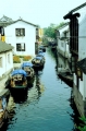 周庄因河成街,依河筑屋,桥街相连,虽然历经沧桑,仍完整地保存着原有的水乡古镇的风貌和格局,宛如一颗镶嵌在淀山湖畔的明珠。周庄之美,首先在于水,水是古镇的灵魂所在,有“镇为泽国,四面环水”之说,两横两纵的河流在此形成“井”字形从镇中穿过,水景如诗如画。古镇内河道呈井字型,有河有街必有桥,河道上横跨14座建于元、明、清代的极具特色的古桥,游人乘坐吴中舟楫,穿梭于周庄古镇的水道之中,偶尔彩虹飞架,偶尔石门洞开,古景依依,水风习习,令人寻味。